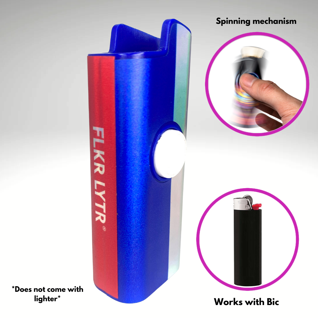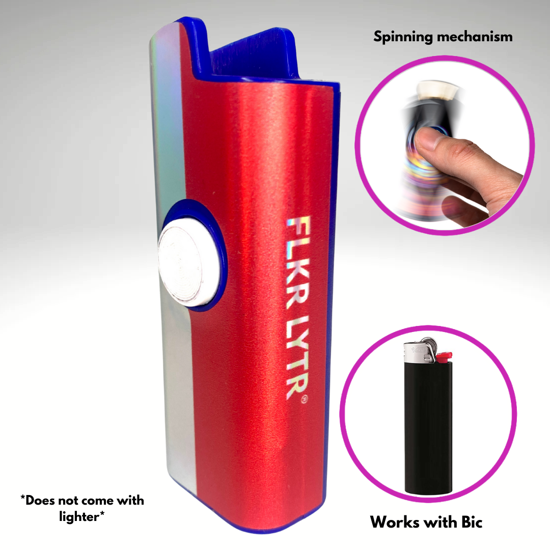 - Spinner Lighter Cover: The world's first patented spinning lighter case! The FLKR LYTR fidget spinner lighter case is the original lighter cover that combines the calming effects of fidget spinners with the security of a protective lighter case while providing a sleek and elegant look!