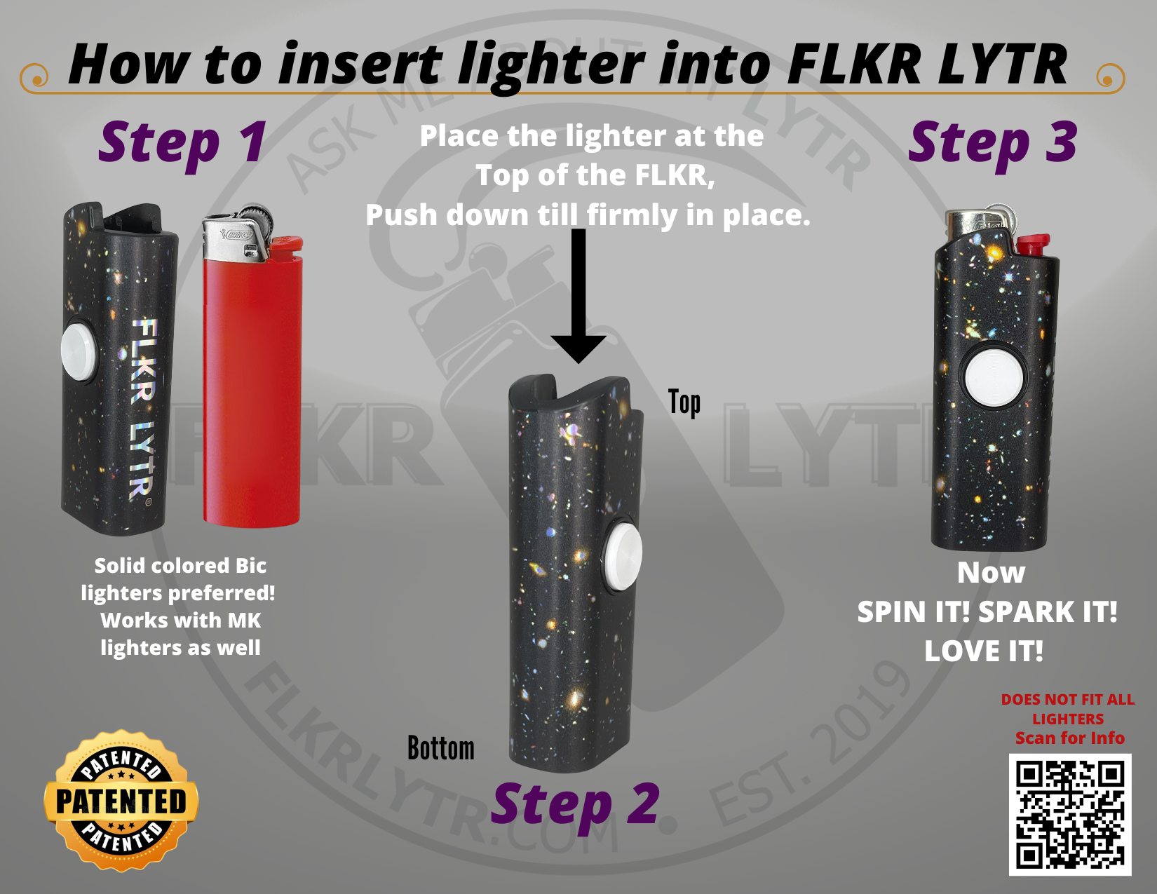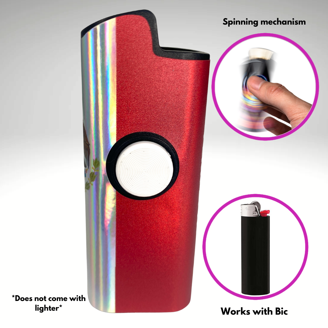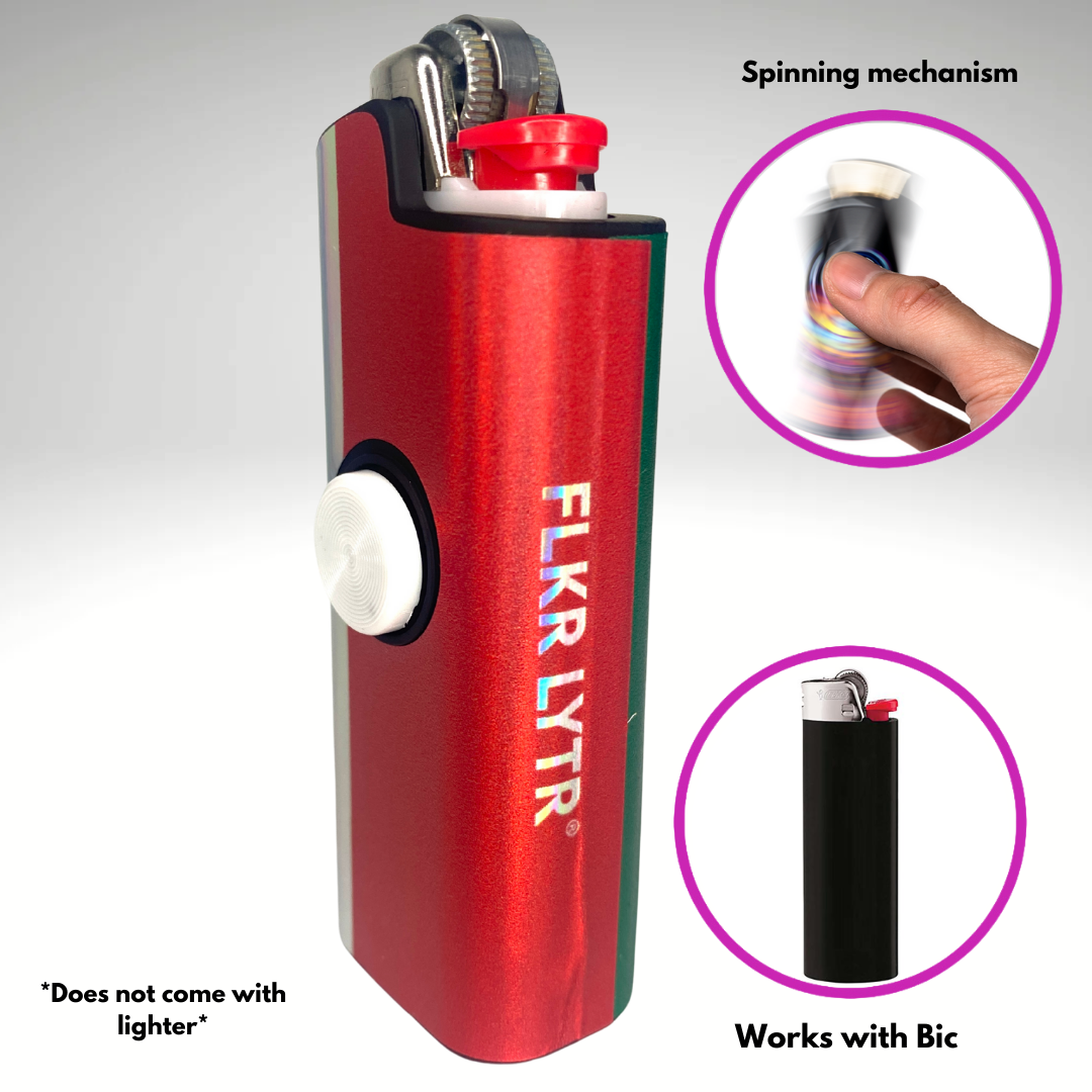 - Spinner Lighter Cover: The world's first patented spinning lighter case! The FLKR LYTR fidget spinner lighter case is the original lighter cover that combines the calming effects of fidget spinners with the security of a protective lighter case while providing a sleek and elegant look!