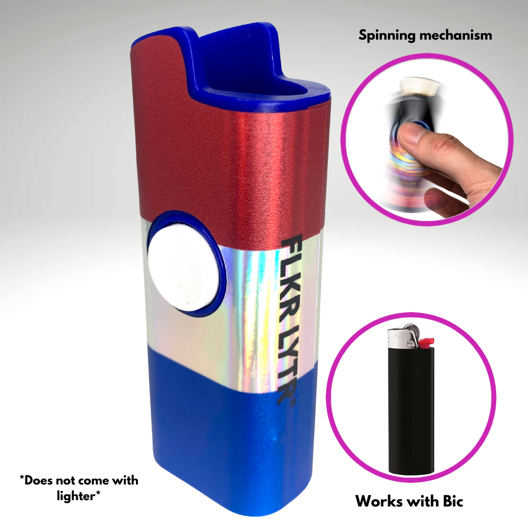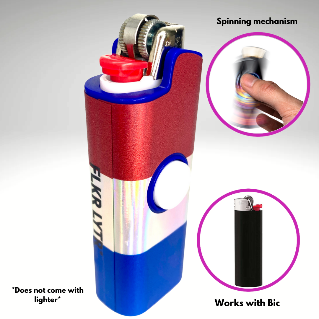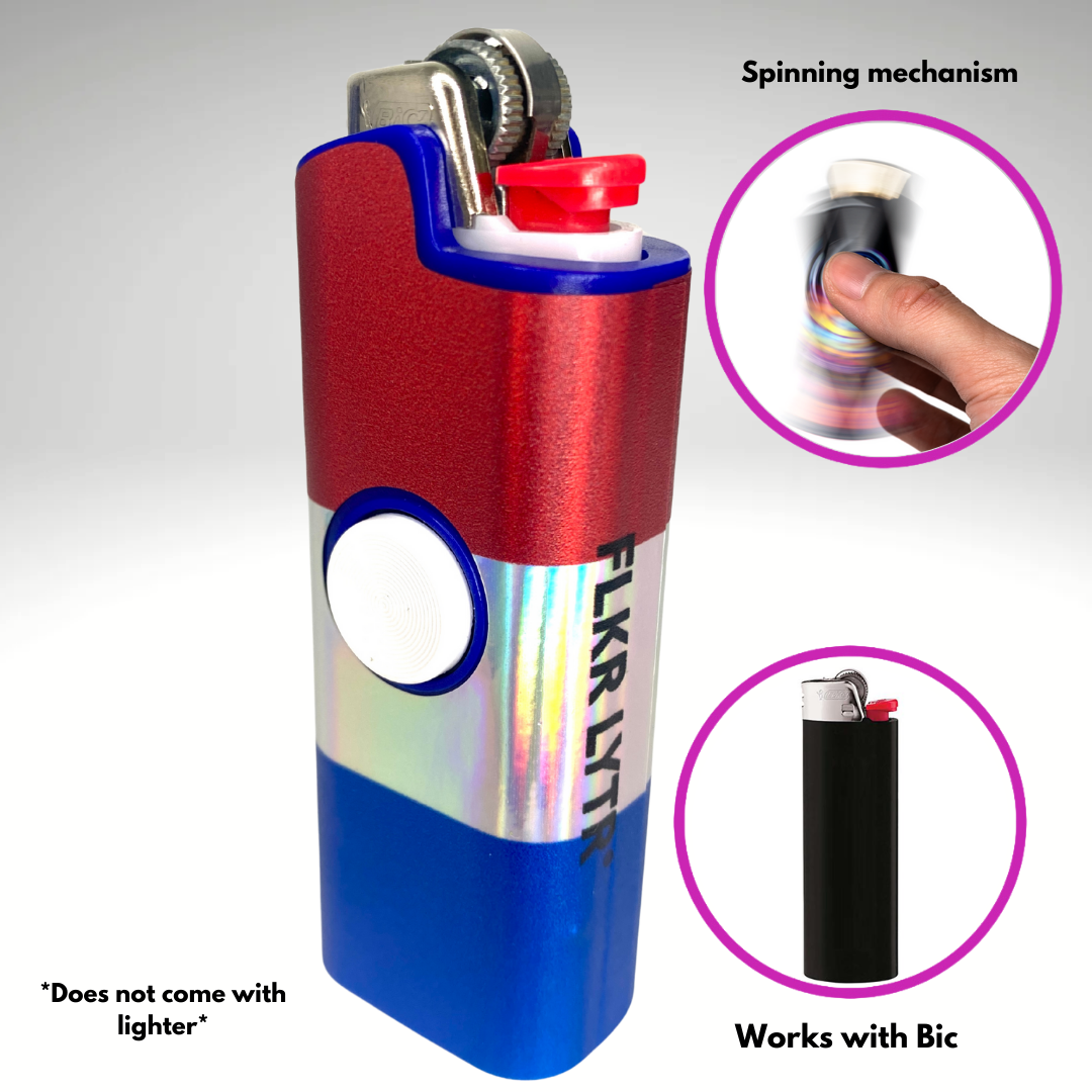 - Spinner Lighter Cover: The world's first patented spinning lighter case! The FLKR LYTR fidget spinner lighter case is the original lighter cover that combines the calming effects of fidget spinners with the security of a protective lighter case while providing a sleek and elegant look!