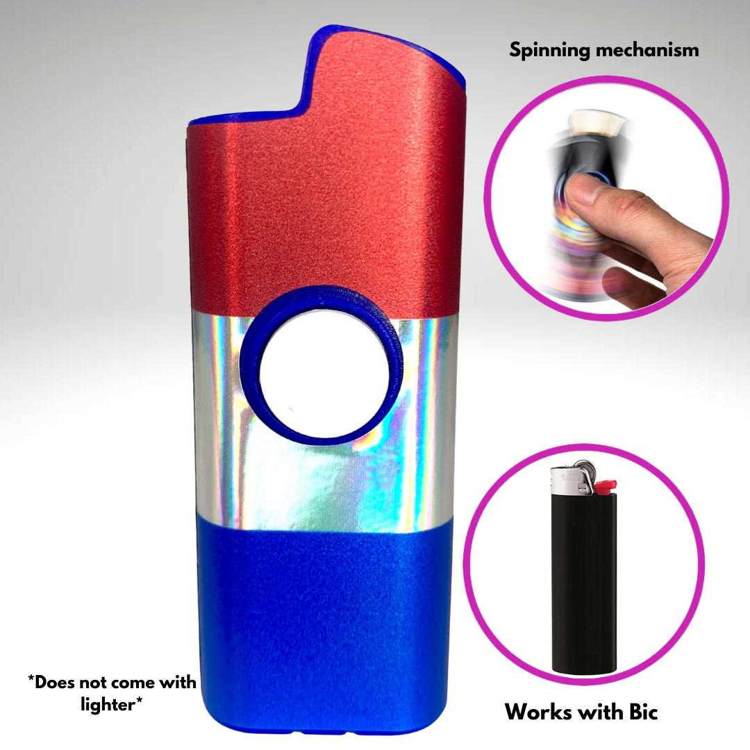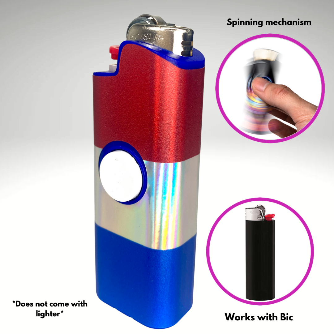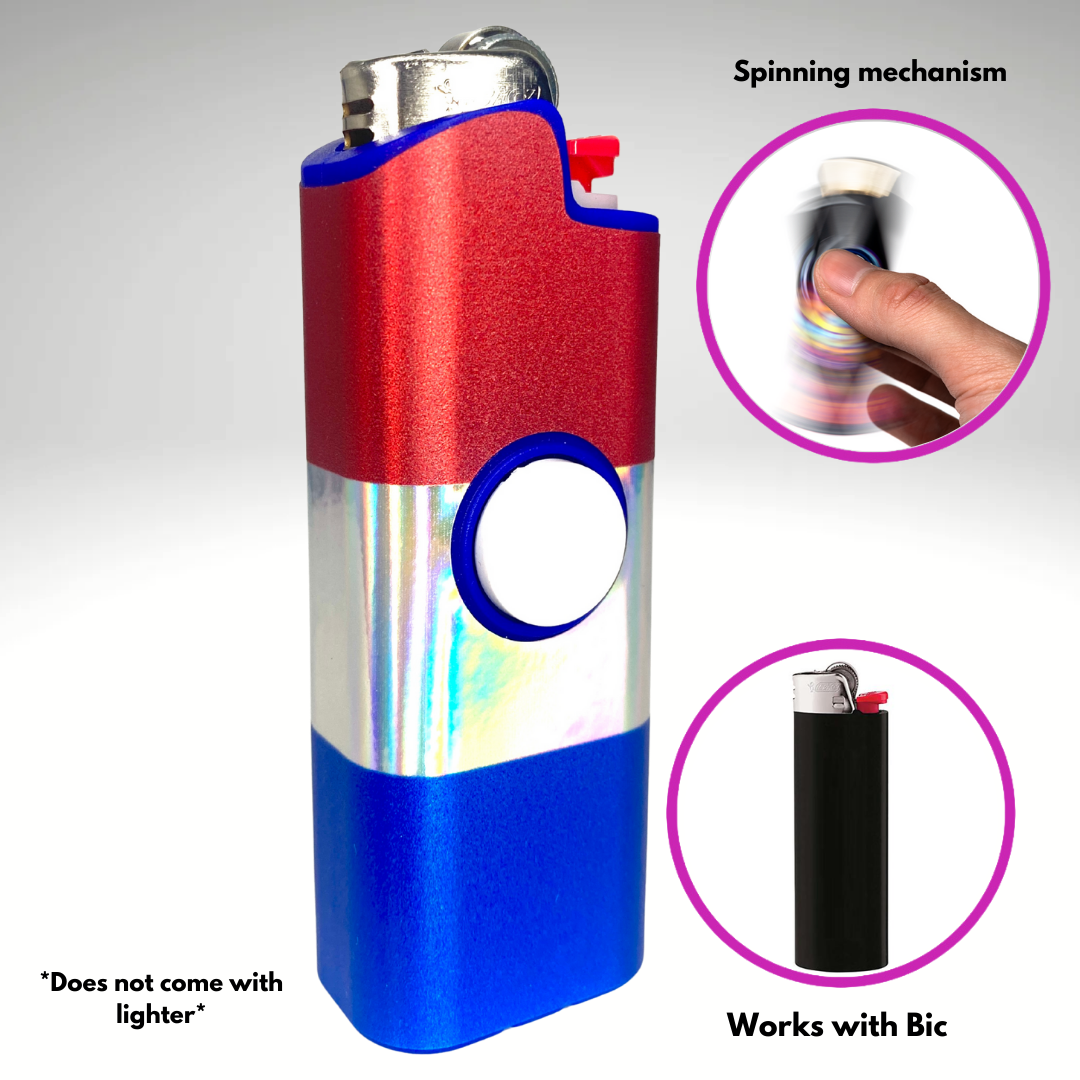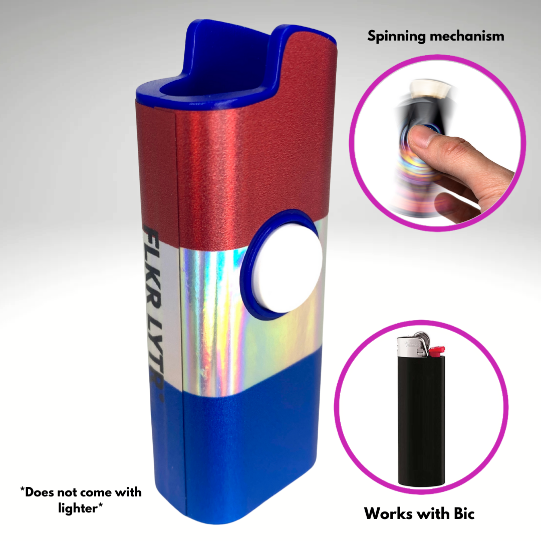 - Spinner Lighter Cover: The world's first patented spinning lighter case! The FLKR LYTR fidget spinner lighter case is the original lighter cover that combines the calming effects of fidget spinners with the security of a protective lighter case while providing a sleek and elegant look!