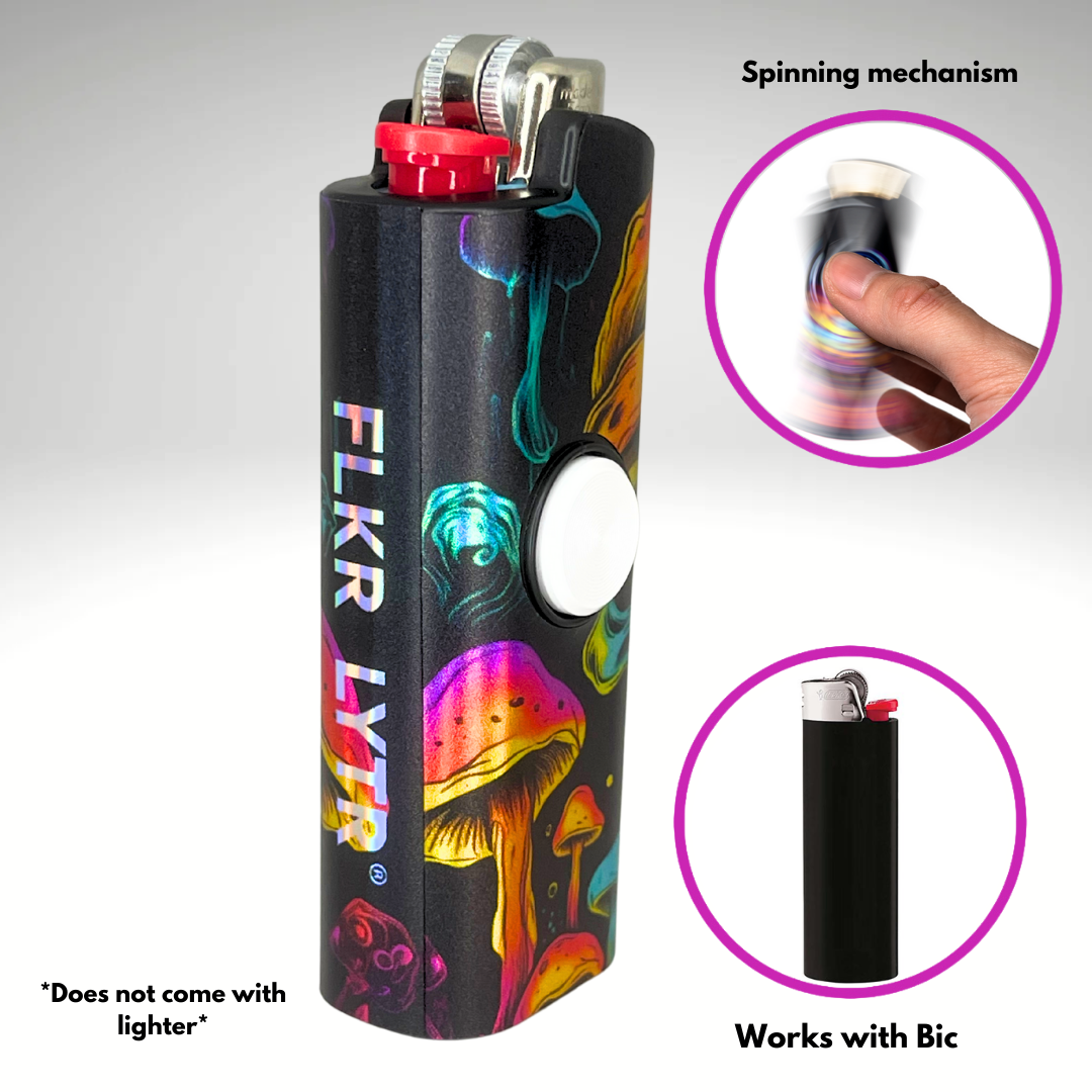FLKR LYTR: Flicker lighter Skull Mushroom FLKR! Gift you and your friend the world's first spinning lighter case- Does not come with lighter. The FLKR LYTR works with a standard Bic lighter, insert the lighter from the bottom of the FLKR and push till firm. Then Spin it, Spark it, Love it!